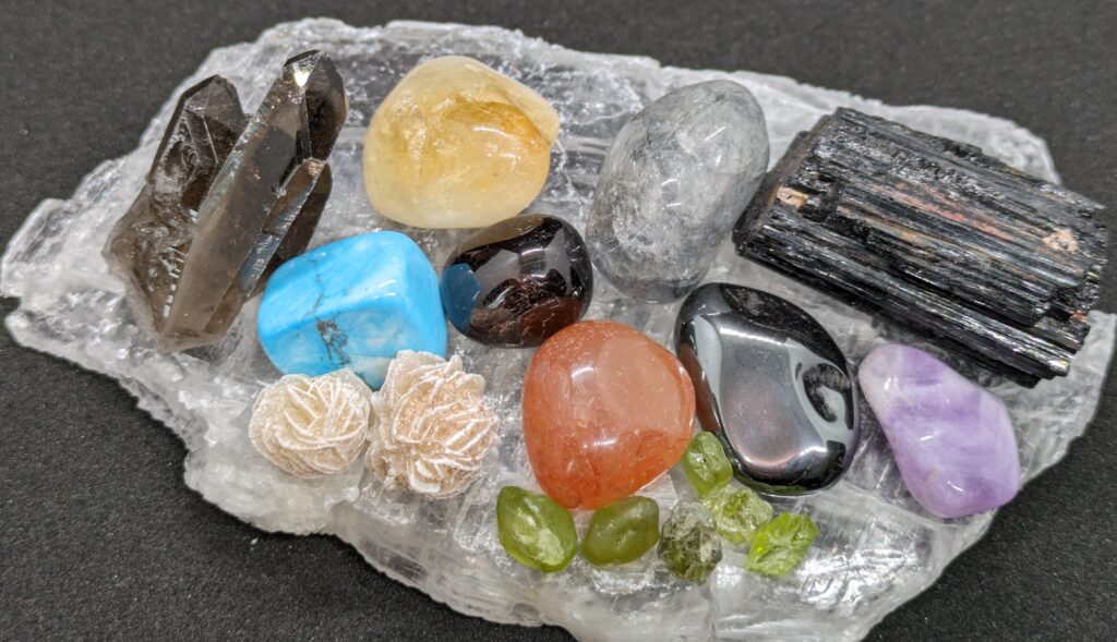 クリスタルの選択: 目的や症状に応じて、適切なクリスタルが選びます。ペンジュラムを使って今必要な石を選択します。