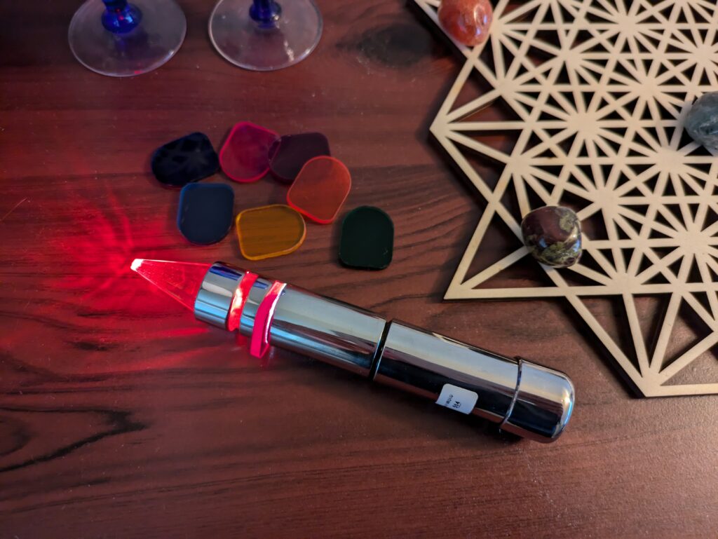 カラーヒーリング:必要に応じて、または、リクエストによって、チャクラに合わせた色のヒーリングを行います。クリスタルのペンライトは、特別ブラジルで浄化されたものを使用します。